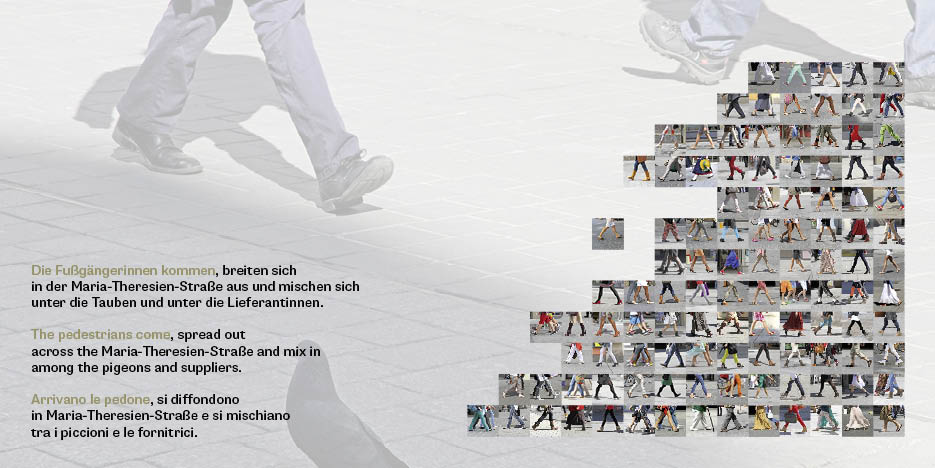 Die Maria-Theresien-Straße in Innsbruck wurde nach ihrer Neugestaltung in den Jahren 2009 bis 2011 die meist frequentierte Geschäftsstraße der österreichischen Landeshauptstädte. Beginnend von den Tauben über Lieferanten, Fußgängerinnen, Kinder, Einkäuferinnen, Barrierebefreiten, Gastgartenbesucherinnen usw. bis zu den Reinigungsmännern zeigt dieser Bildband das Leben in der Fußgängerinnenzone.