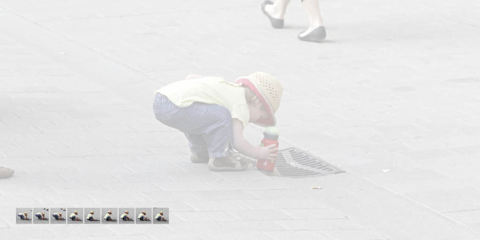 Als gestalterische Grundeinheit bestimmt der Raster des Pflasterbelags die Grafik und innerhalb dieses Rasters fügt das Buch das Leben in der neu gestalteten Straße wie ein Puzzlespiel zusammen.